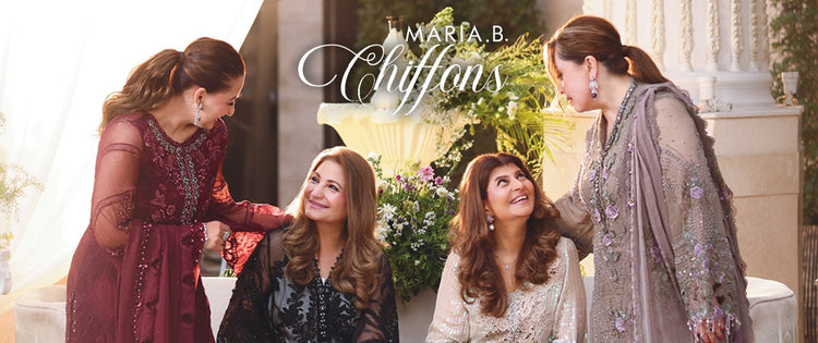 We carry brands such as Maria B, Asim Jofa & Crimson, Sana Safinaz, and many more, and our prices range from low to high, so there is something for everyone. We also have a large selection of daily wear, casual wear, party wear, formal wear, and bridal wear.