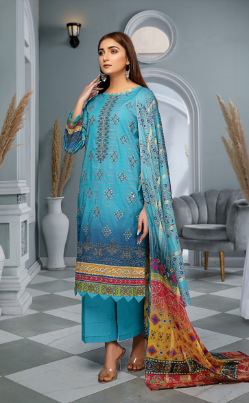 DIGITAL SEQUENCE EMBROIDERED LAWN  DIGITAL DAIMOND SLUB ZAREE DUPATTA  COMFORT OF PLAIN TROUSER