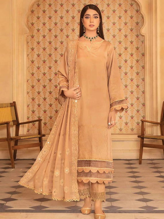 Banarsi Brosha Viscose Shirt Luxury Crinkle Mirror Work Embroidered Dupatta Dyed Trouser