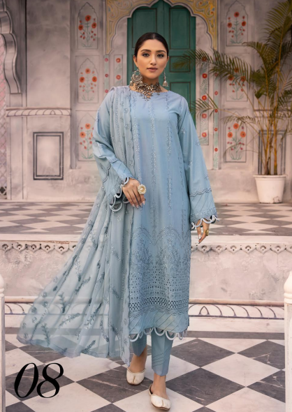 Preimum Sequence Embroidered lawn shirt with luxury full embroiderd Crinkle dupatta and comfort plane trouser