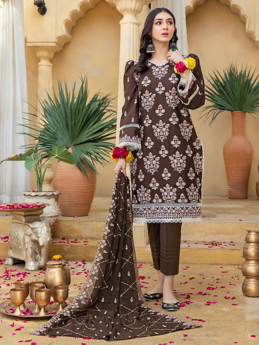 Premium Sequence Embroidered Lawn Shirt Luxury Embroidered Pure Bamber Dupatta Dyed cotton trouser