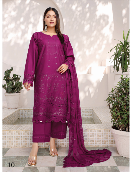 Premium Sequence Embroidered Lawn Shirt With Embroidered Crinkel Dupatta And Comfort Plain Trouser