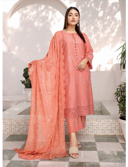 Premium Sequence Embroidered Lawn Shirt With Embroidered Crinkel Dupatta And Comfort Plain Trouser