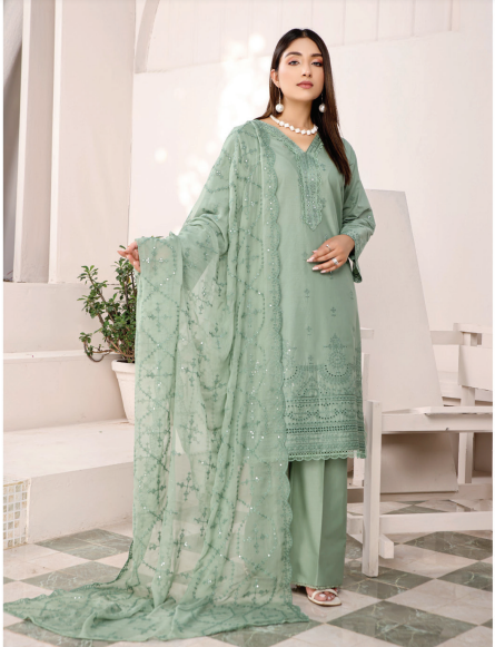 Premium Sequence Embroidered Lawn Shirt With Embroidered Crinkel Dupatta And Comfort Plain Trouser