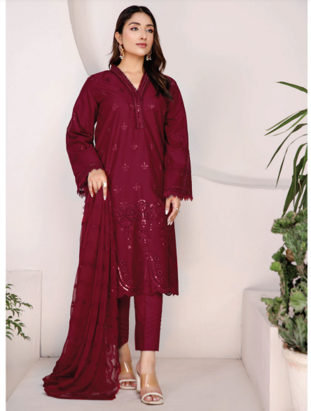 Premium Sequence Embroidered Lawn Shirt With Embroidered Crinkel Dupatta And Comfort Plain Trouser