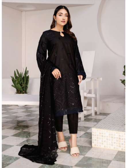 Premium Sequence Embroidered Lawn Shirt With Embroidered Crinkel Dupatta And Comfort Plain Trouser