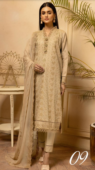 Full embroidered dobby lawn shirt with luxury embroidered chantelly crinkel dupatta and comfort plane trouser
