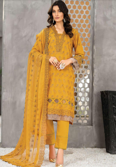 Premium Fully Embroidered Lawn Shirt Luxury Embroidered Chantelle Bamber Dupatta Dyed cotton trouser