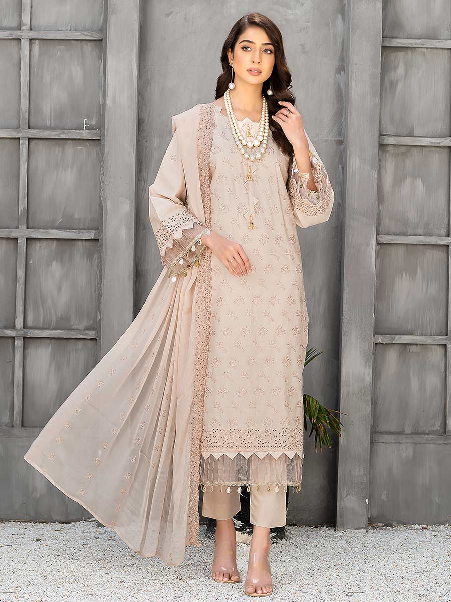 Premium Fully Embroidered Lawn Shirt Luxury Embroidered Chantelle Bamber Dupatta Dyed cotton trouser