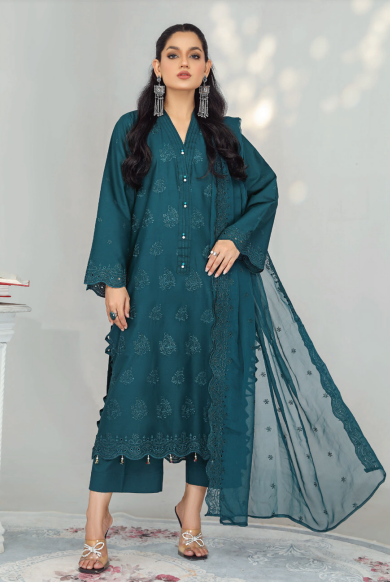 DIGITAL SEQUENCE EMBROIDERED LAWN  DIGITAL DAIMOND SLUB ZAREE DUPATTA  COMFORT OF PLAIN TROUSER