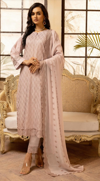Full embroidered dobby lawn shirt with luxury embroidered chantelly crinkel dupatta and comfort plane trouser