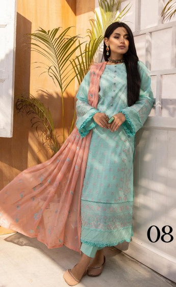Premium full Embroidered lawn shirt with luxury full Embroidered Contrass Crinkel dupatta and comfort plane trouser*