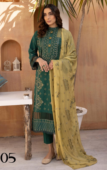 Premium full Embroidered lawn shirt with luxury full Embroidered Contrass Crinkel dupatta and comfort plane trouser*