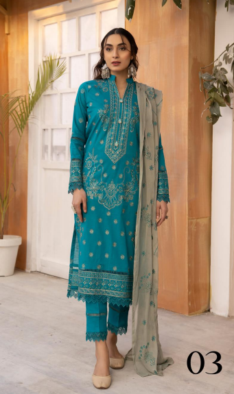 Premium full Embroidered lawn shirt with luxury full Embroidered Contrass Crinkel dupatta and comfort plane trouser*