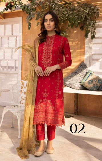 Premium full Embroidered lawn shirt with luxury full Embroidered Contrass Crinkel dupatta and comfort plane trouser*