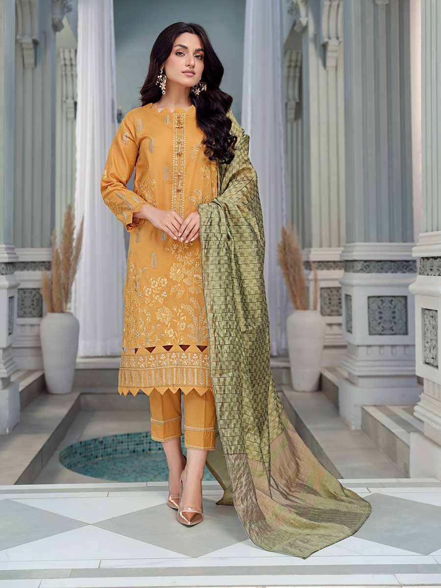Premium Embroidered Lawn Shirt Digital Fancy Zari Dupatta Dyed cotton trouser