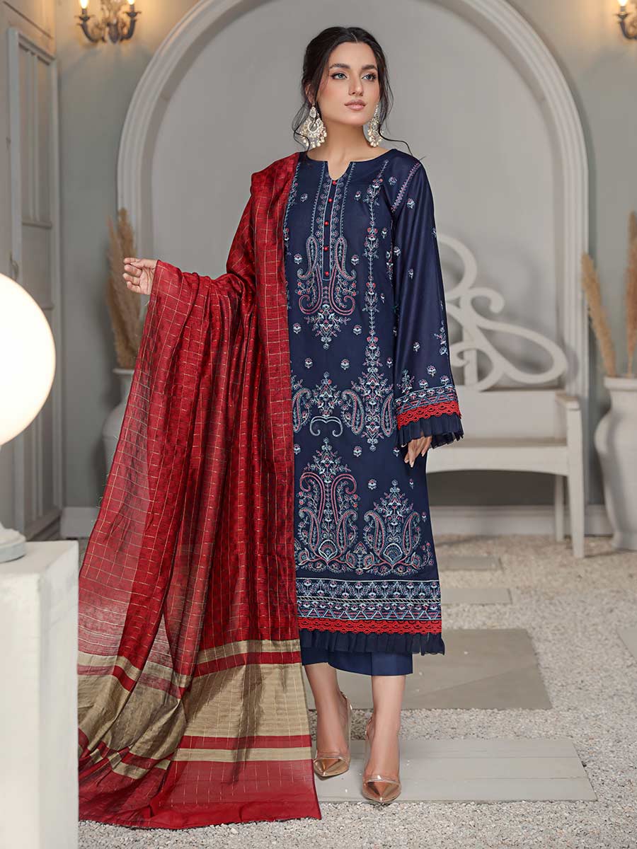 Premium Embroidered Lawn Shirt Digital Fancy Zari Dupatta Dyed cotton trouser