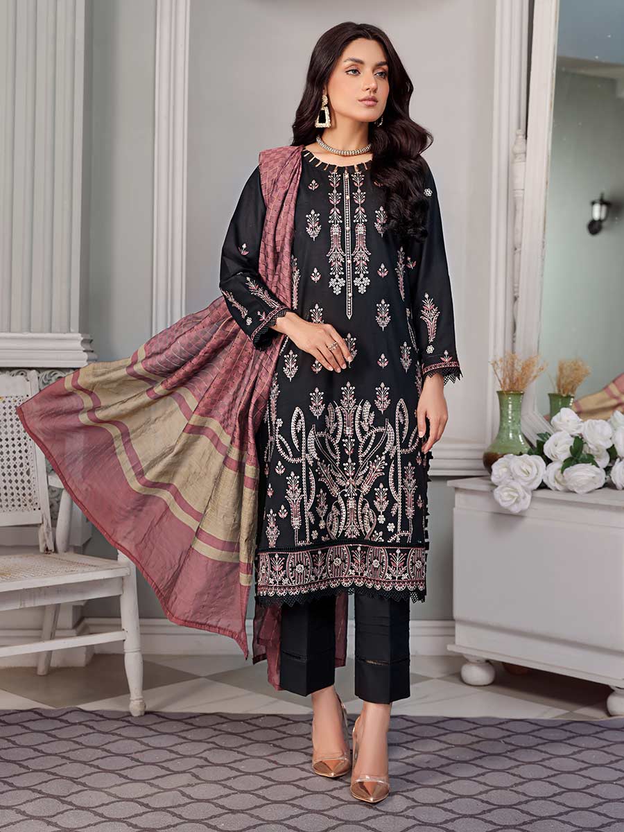 Premium Embroidered Lawn Shirt Digital Fancy Zari Dupatta Dyed cotton trouser
