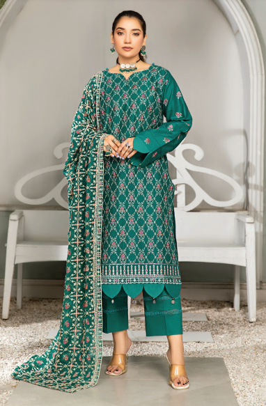 Premium Fully Embroidered Lawn Shirt Luxury Heavy Embroidered Pure Bamber Dupatta Dyed cotton Trouser