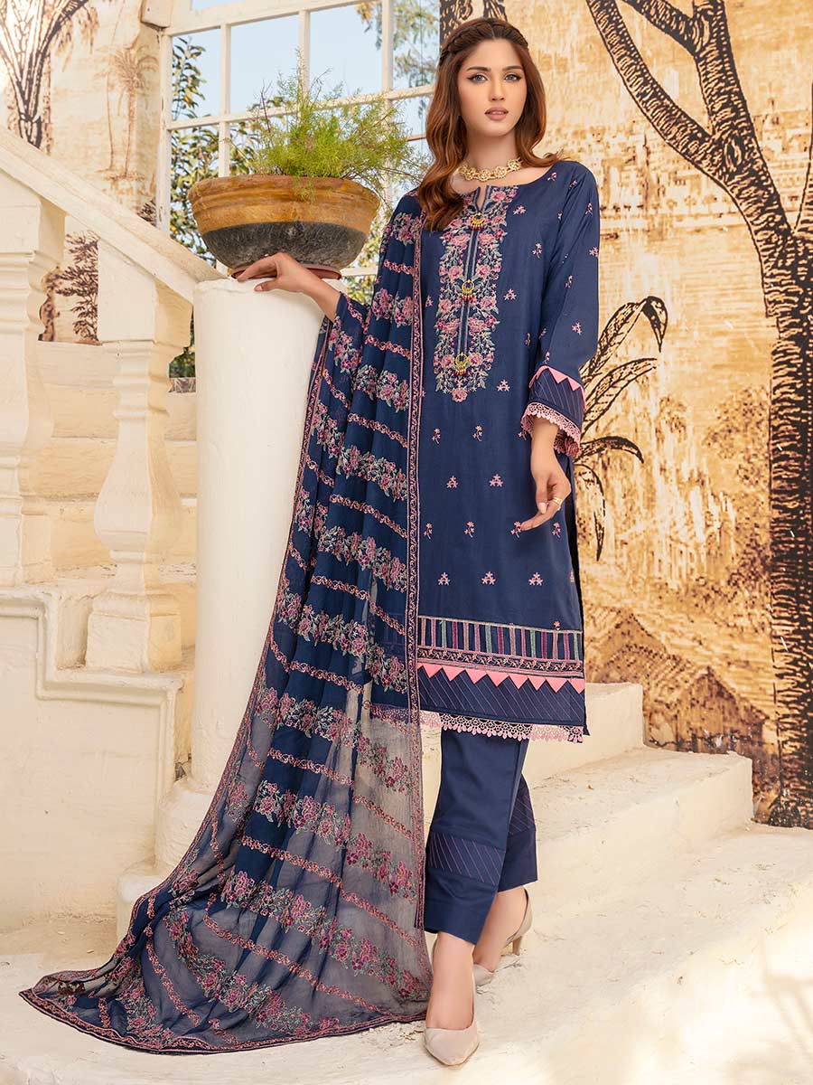 Premium Luxury Embroidered Lawn Shirt Luxury Heavy Embroidered Bamber Dupatta Dyed cotton trouser