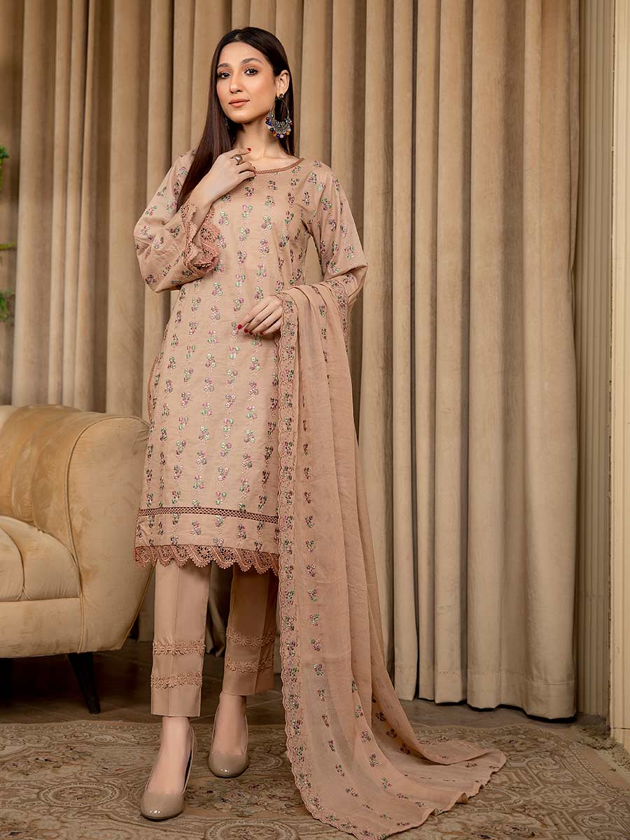 Premium Fully Embroidered Lawn Shirt Luxury Embroidered Chantelle Bamber Dupatta Dyed cotton trouser