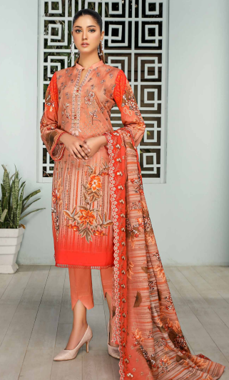DIGITAL embriderd lawn shirt with digital voile chantelly dupatta and comfort plane trouser
