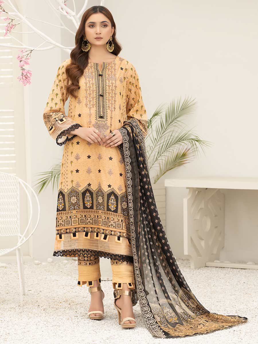 Digital Printed & Sequence Embroidered Lawn Shirt Digital Printed & Embroidered Voil Dupatta Dyed cotton trouser