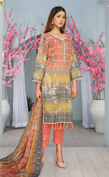 DIGITAL embriderd lawn shirt with digital voile chantelly dupatta and comfort plane trouser
