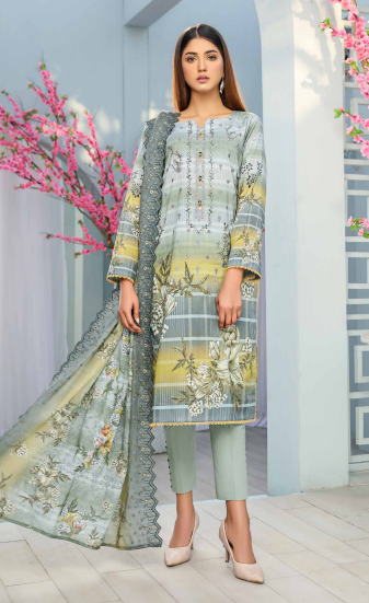 DIGITAL embriderd lawn shirt with digital voile chantelly dupatta and comfort plane trouser