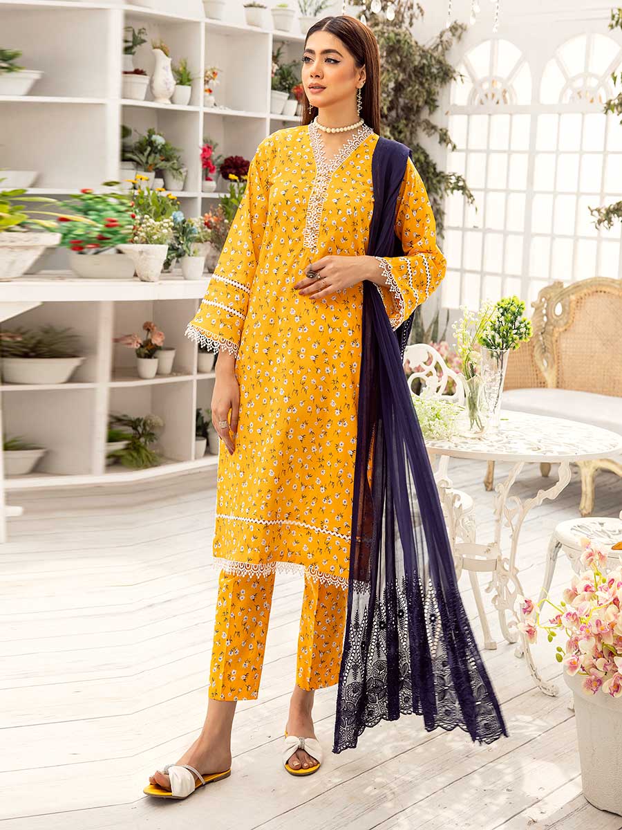 Digital Printed Lawn Shirt Crinkle Embroidered Chantilly Dupatta Digital Printed trouser
