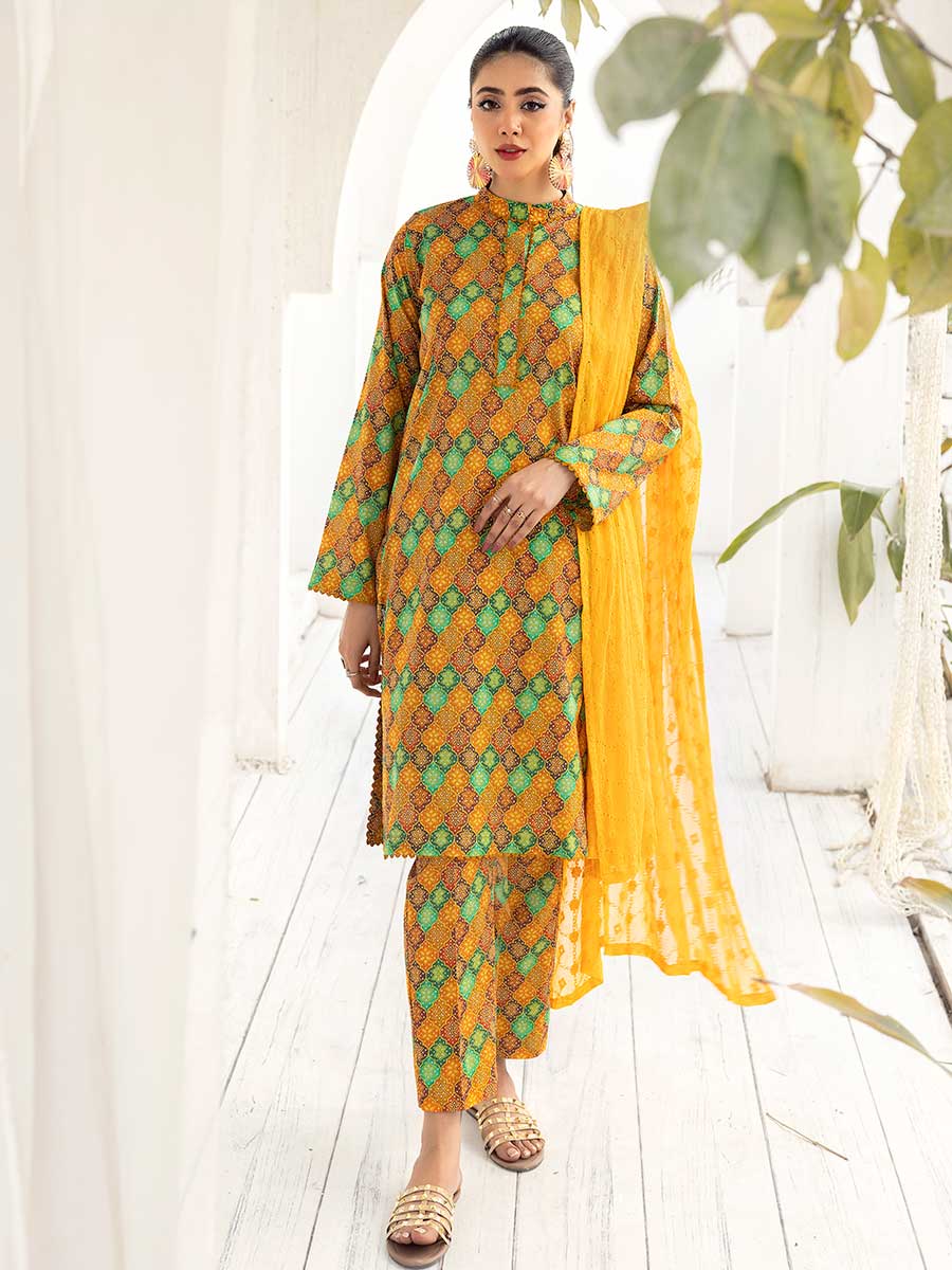 Digital Printed Lawn Shirt Crinkle Embroidered Chantilly Dupatta Digital Printed trouser