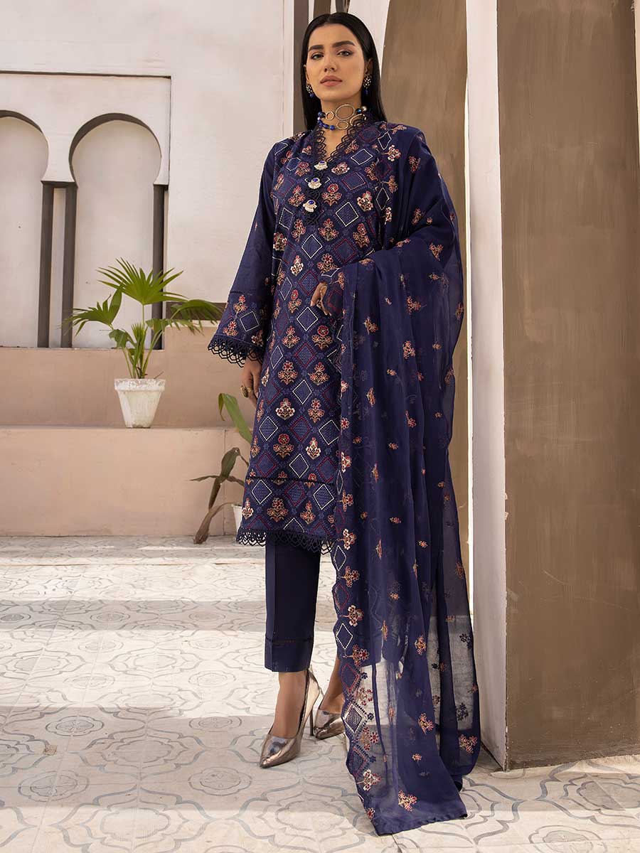Heavy Embroidered Slub Lawn Shirt Chantilly Embroidered Peko Crinkle Dupatta Dyed cotton trouser