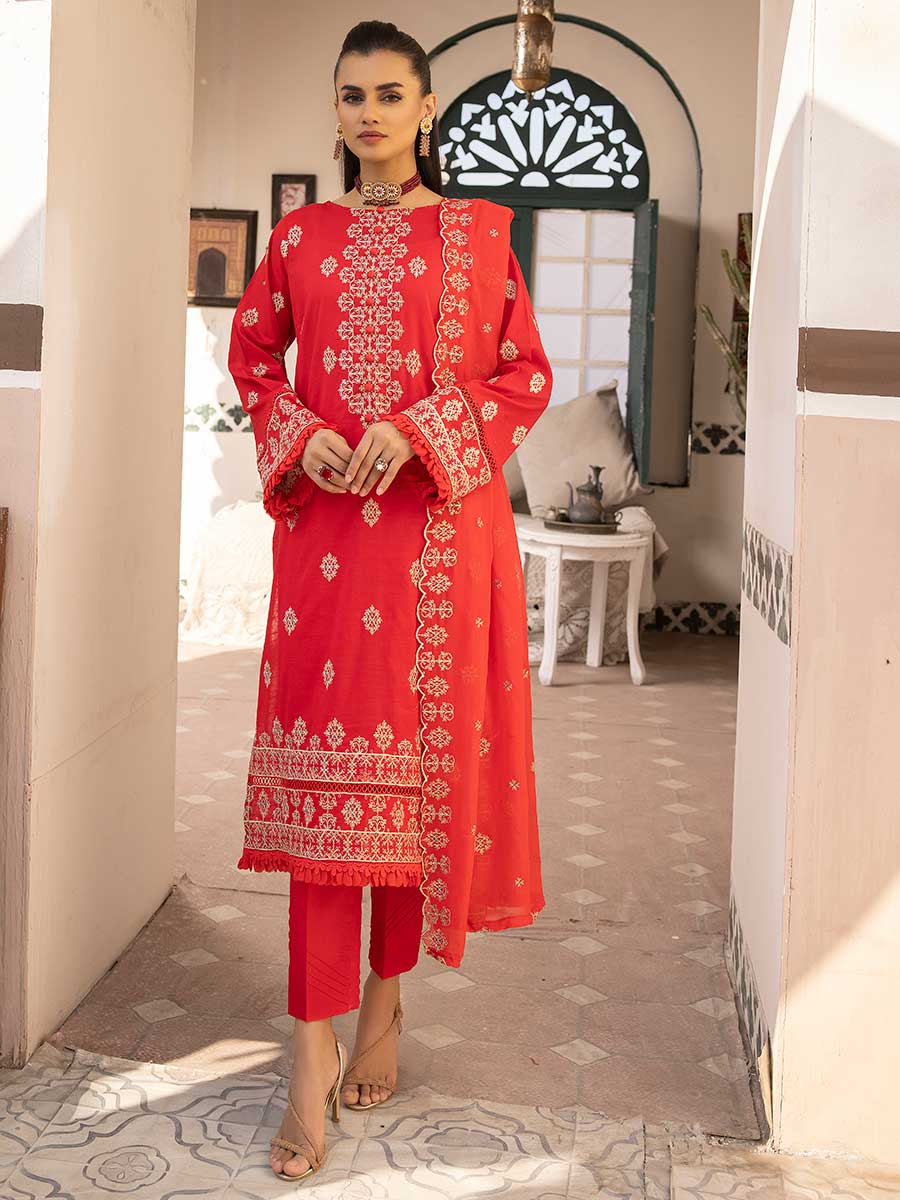 Heavy Embroidered Slub Lawn Shirt Chantilly Embroidered Peko Crinkle Dupatta Dyed cotton trouser
