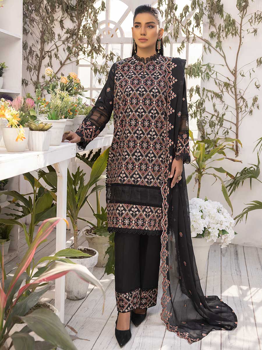 Heavy Embroidered Slub Lawn Shirt Chantilly Embroidered Peko Crinkle Dupatta Dyed cotton trouser