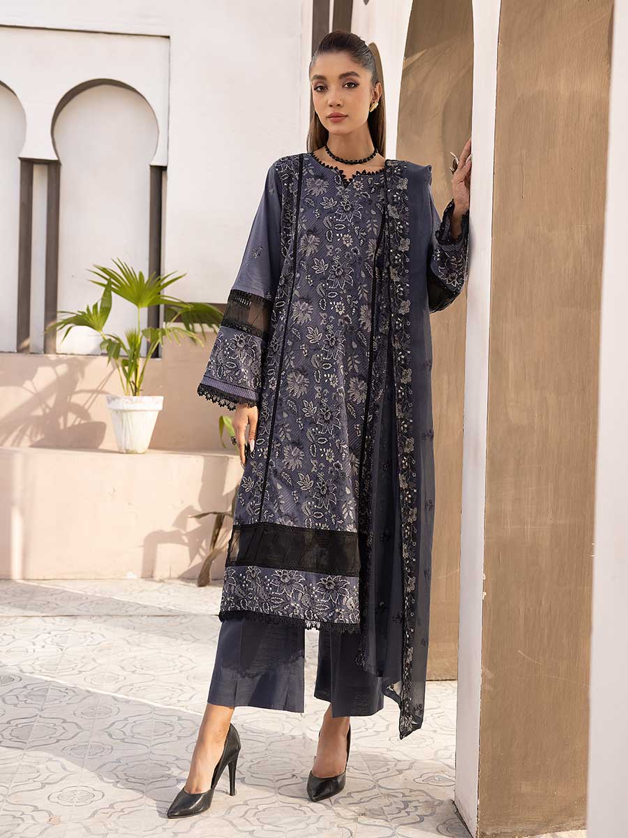 Heavy Embroidered Slub Lawn Shirt Chantilly Embroidered Peko Crinkle Dupatta Dyed cotton trouser