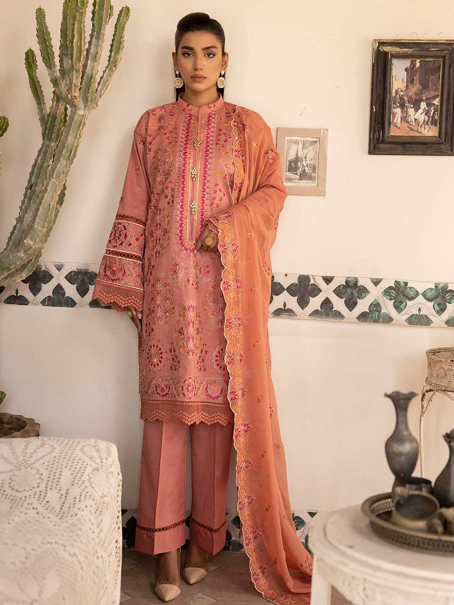 Heavy Embroidered Slub Lawn Shirt Chantilly Embroidered Peko Crinkle Dupatta Dyed cotton trouser