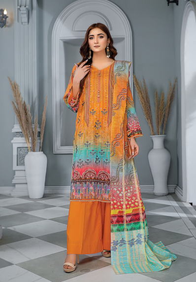 DIGITAL SEQUENCE EMBROIDERED LAWN  DIGITAL DAIMOND SLUB ZAREE DUPATTA  COMFORT OF PLAIN TROUSER