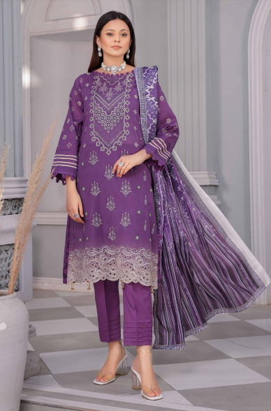 Digital Embroiderd boring daman lawn shirt with digital printed fancy silk dupatta and comfort plain trouser