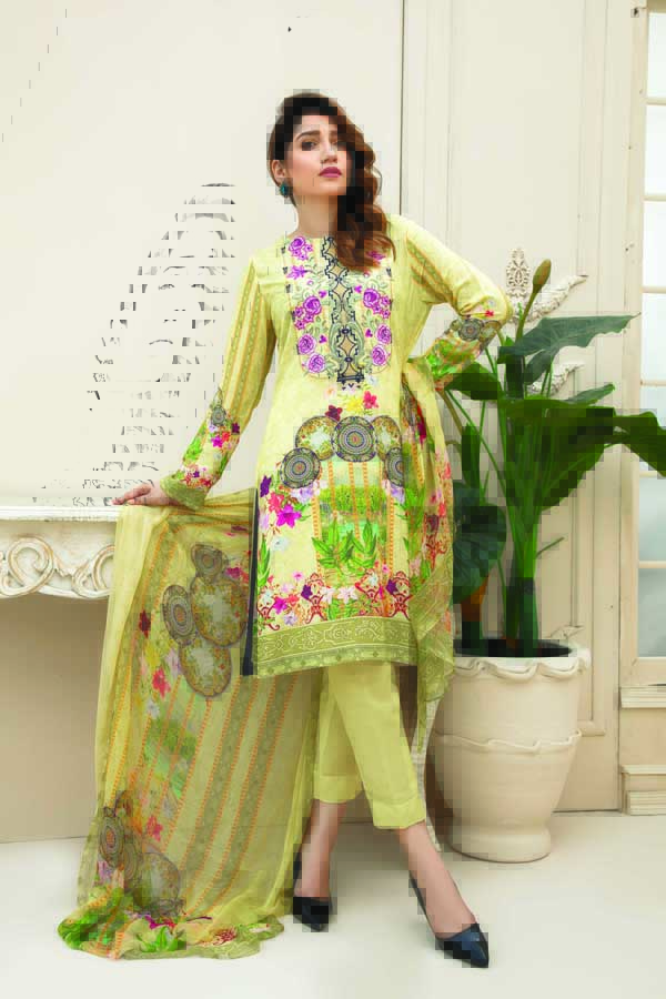 Front Digital Embroidered Karandi Back Digital Printed Karandi Sleeves Digital Printed Karandi Digital Printed Chiffon Dupatta Dyed...