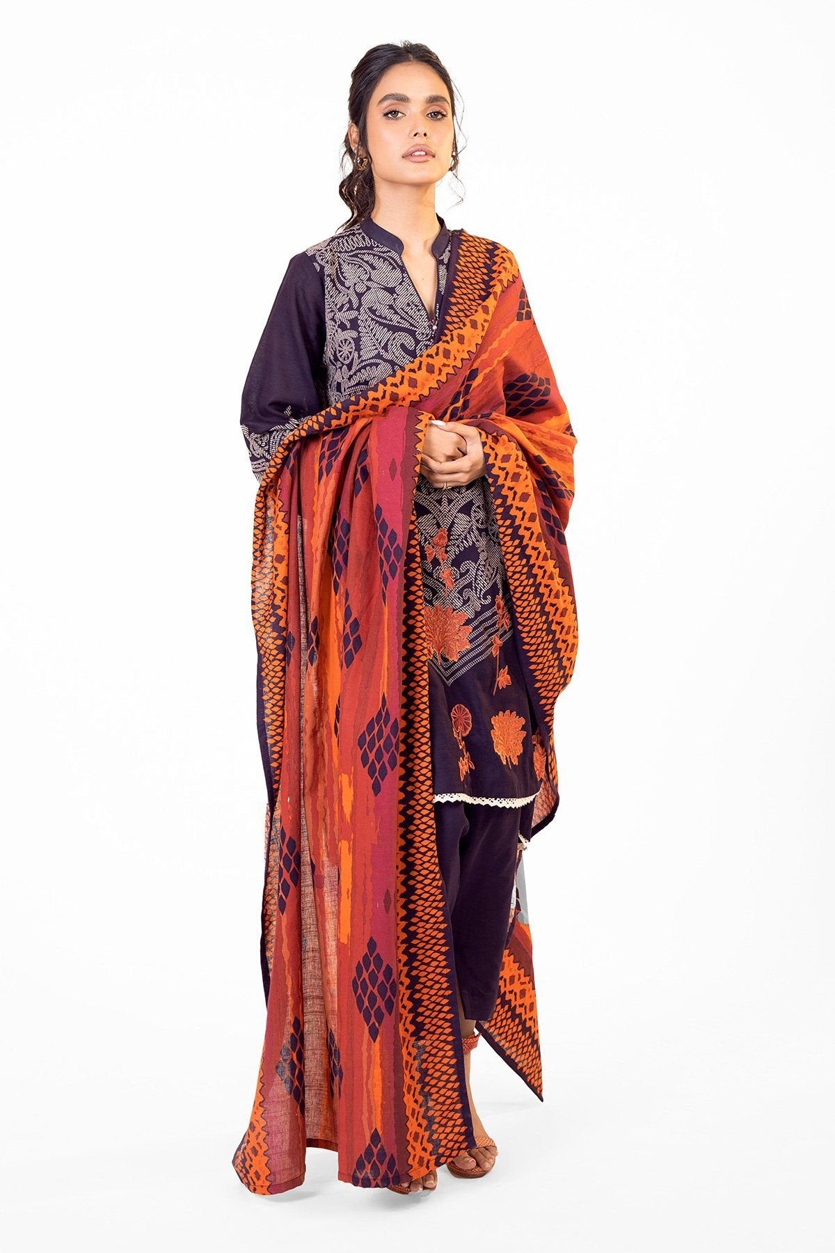 Printed Khaddar Shirt 3.13 Meters Embroidered Motifs On Daman Dupatta: Printed Light Khaddar Dupatta Trouser: Dyed Khaddar...