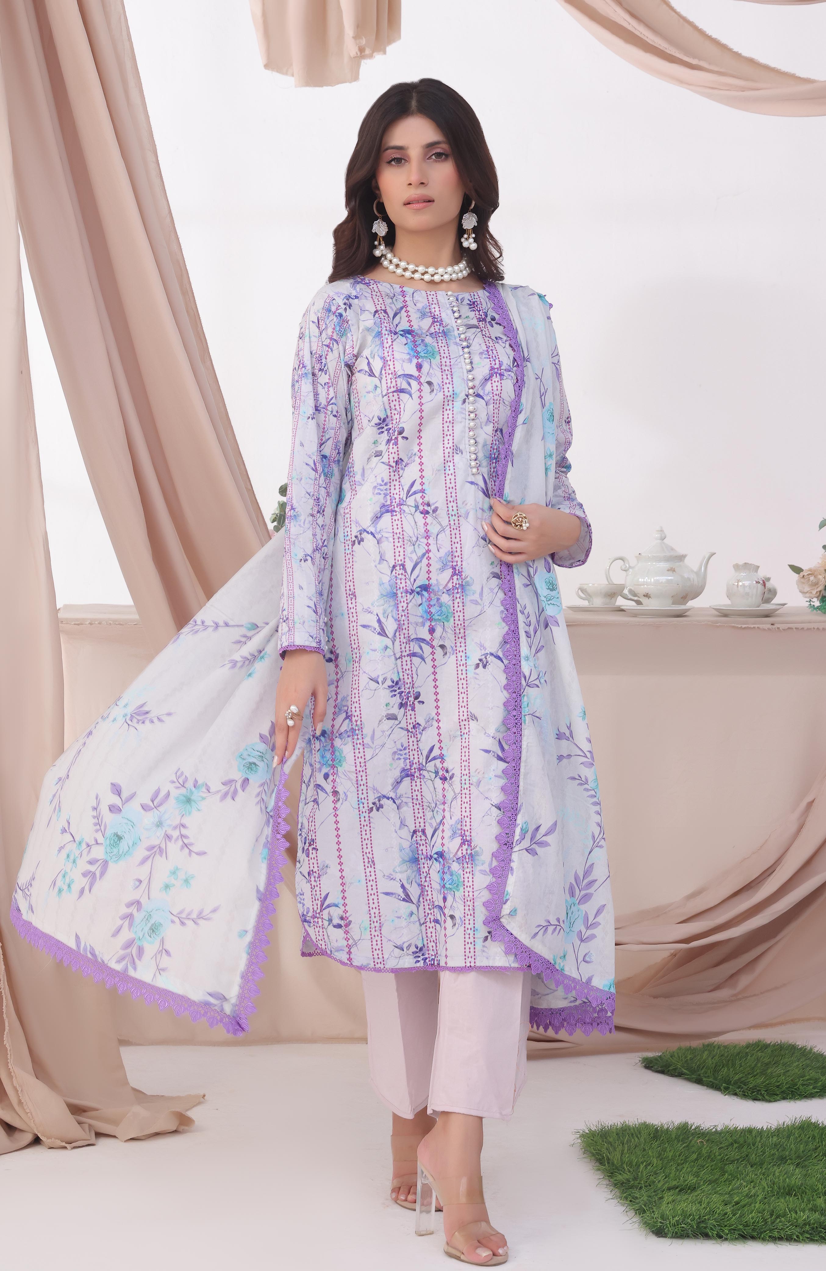 Shirt: Digital Printed  Dupatta: Digital Printed Trouser: Dyed Cambric