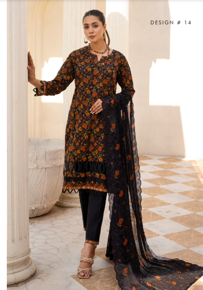 Digital Printed Lawn With ChickanKari Cutwork Bamber Chiffon Dupattas