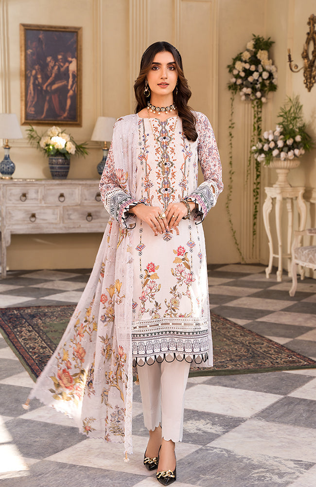 3-PIECE DIGITAL EMBROIDERED EDITION WITH BAMBER CHIKANKARI DUPATTA-22 SHIRT FRONT: Digital Printed Cambric SHIRT BACK: Digital Printed...
