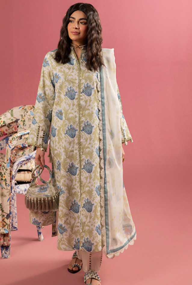 Digital Printed Fine Lawn Shirt & Plain Cotton TrouserDigital Printed Chiffon Dupatta