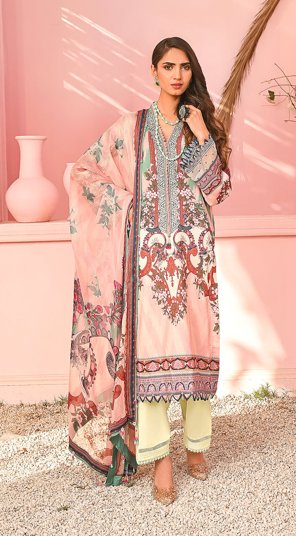 Digital Printed Chiffon Dupatta Digital Printed Lawn Shirt Dyed Cambric Cotton Trouser Embroidered Sleeve Border Embroidered Neckline...