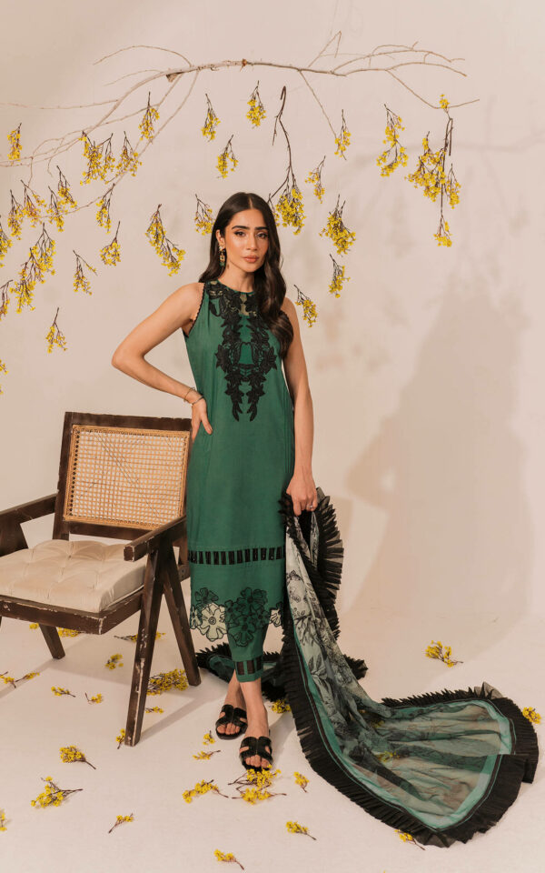 3 piece suit. Digital Printed Bamboo Silk Dupatta. Dyed plain lawn for front. 1 Embroidered neckline patch...