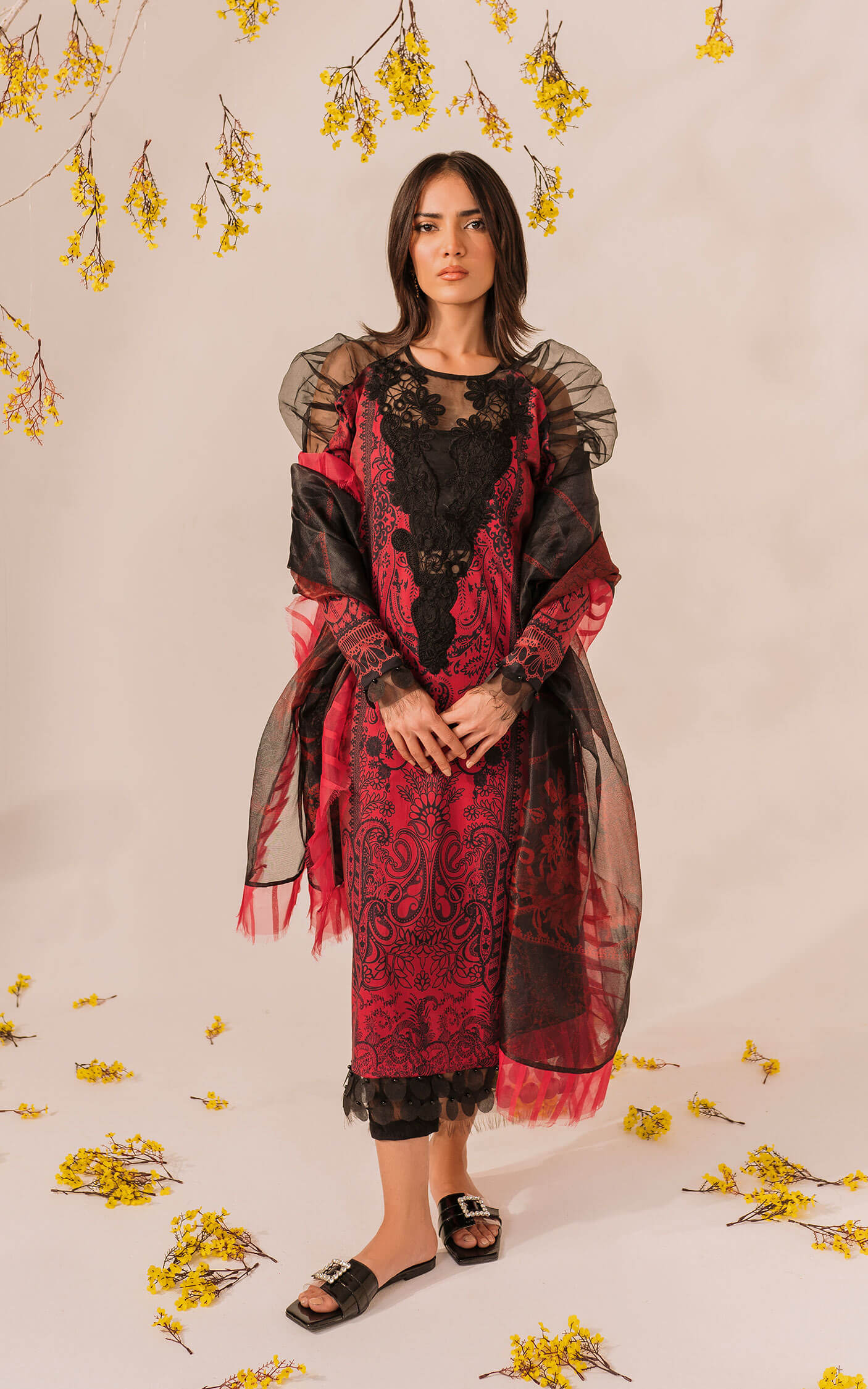 3 piece suit. Digital Printed Rajjo Net Dupatta. Digital printed Front on lawn. 1 Embroidered neckline patch...
