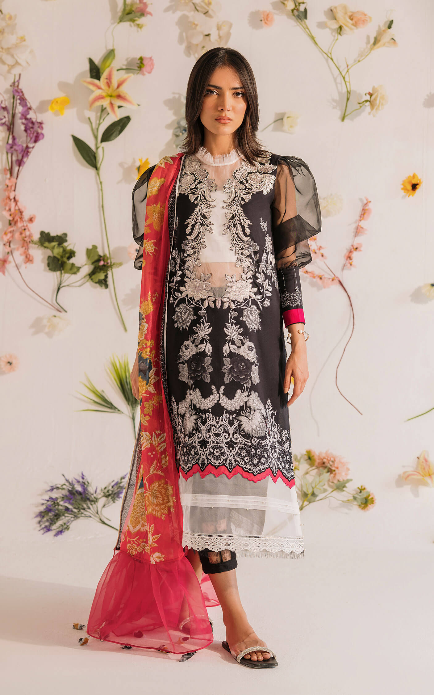 3 piece suit. Digital Printed Bamboo Silk Dupatta. Digital printed Front on lawn. 1 Embroidered neckline patch...