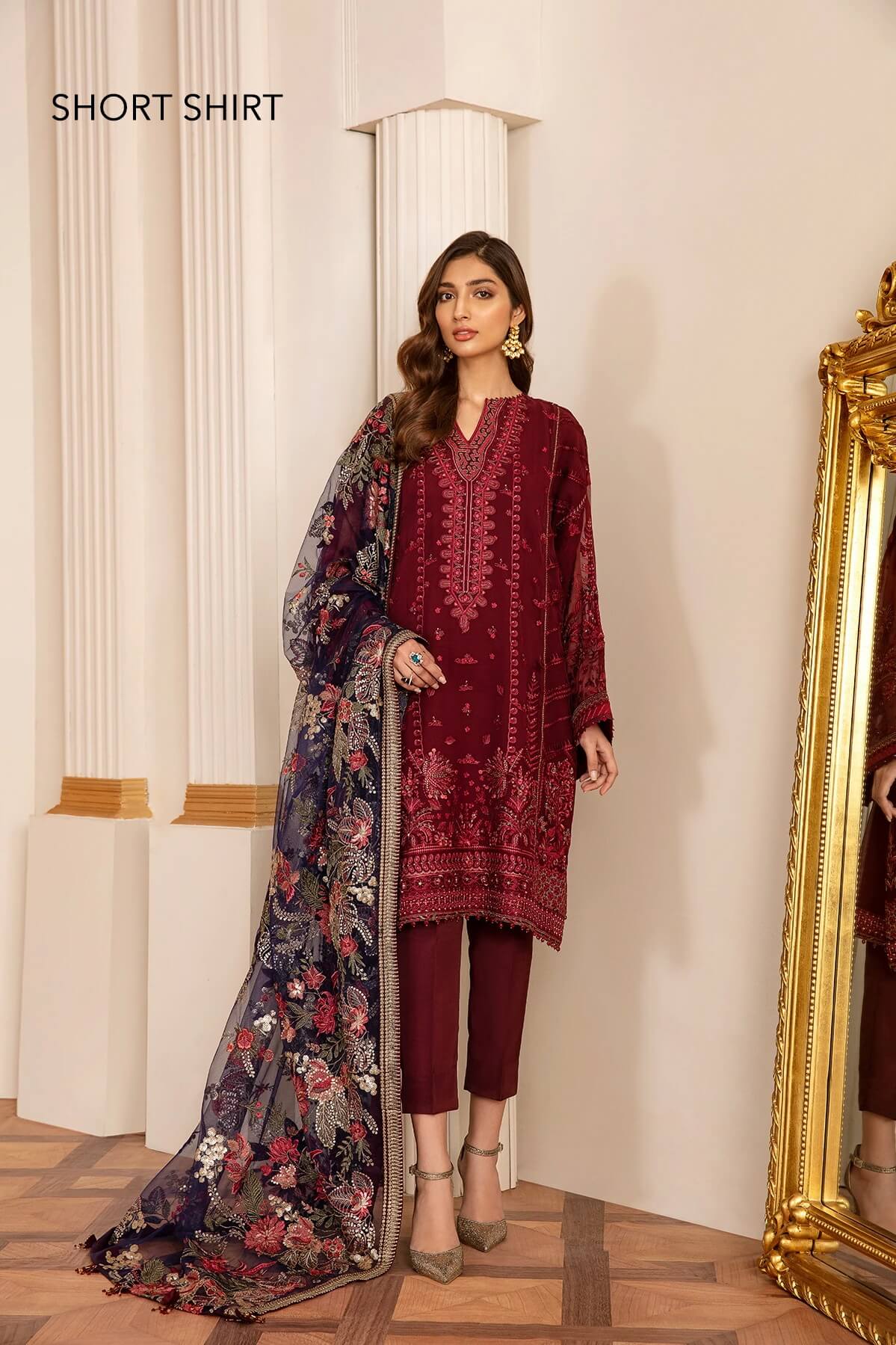 Embroidered Net 3 Piece Suit Embroidered Net Front Body 1 Pc Embroidered Net Back Body 1 Pc...