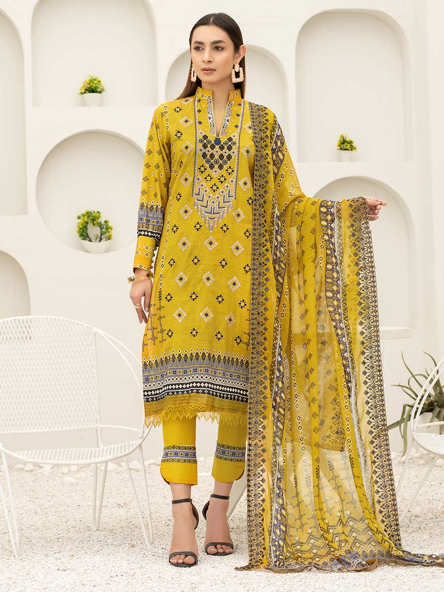 Digital Printed & Sequence Embroidered Lawn Shirt Digital Printed & Embroidered Voil Dupatta Dyed cotton trouser